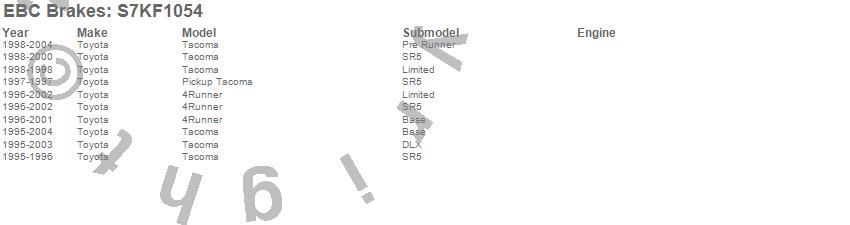 Below is an abbreviated list of applications for the S7 Kits Orangestuff and BSD Rotors.