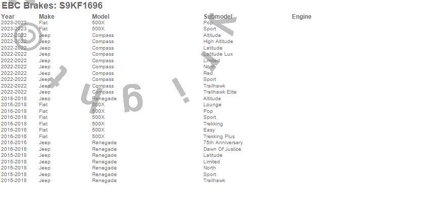 Below is an abbreviated list of applications for the S9 Kits Yellowstuff and USR Rotors.