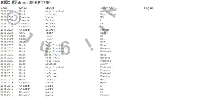 Below is an abbreviated list of applications for the S9 Kits Yellowstuff and USR Rotors.