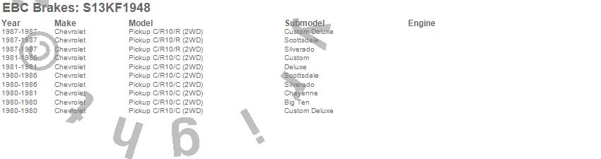 Below is an abbreviated list of applications for the S13 Kits Yellowstuff and RK Rotors.
