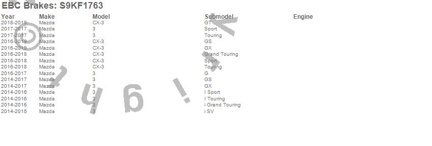 Below is an abbreviated list of applications for the S9 Kits Yellowstuff and USR Rotors.