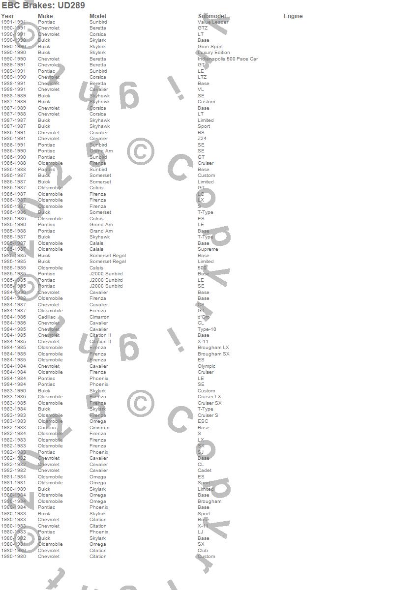 Beretta, Calais, Cavalier, Cimarron, Citation, Citation II, Corsica, Firenza, Grand Am, J2000 Sunbird, Omega, Phoenix, Skyhawk, Skylark, Somerset, Somerset Regal, Sunbird, Buick, Cadillac, Chevrolet