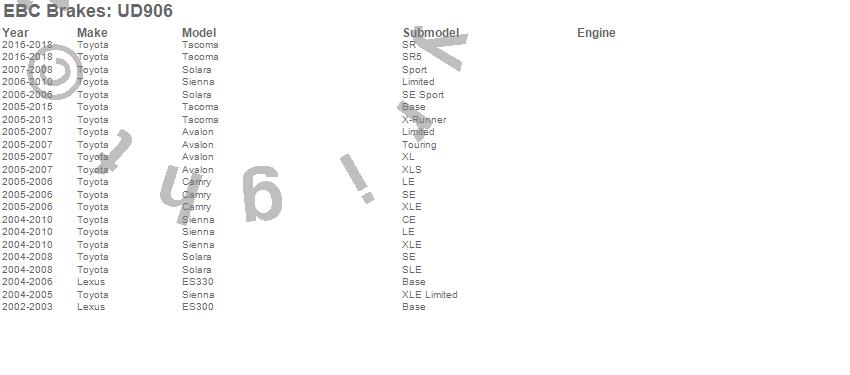 Below is an abbreviated list of applications for the Ultimax OEM Replacement Brake Pads.