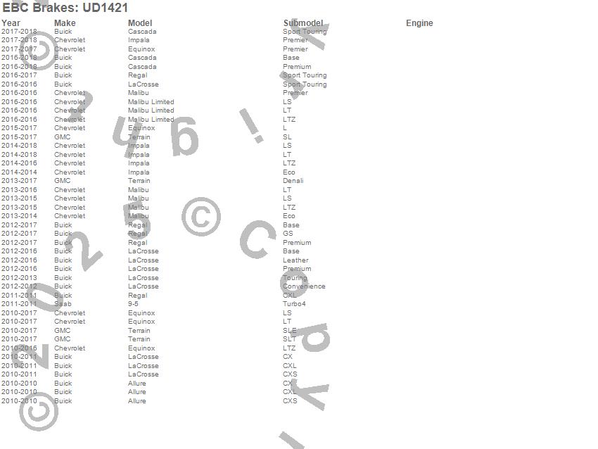 Below is an abbreviated list of applications for the Ultimax OEM Replacement Brake Pads.