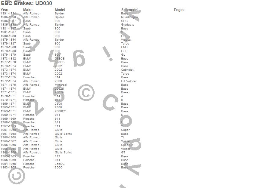 2000, 2002, 2002ti, 2002tii, 2500, 2800, 2800CS, 356B, 356C, 356SC, 630CSi, 633CSi, 900, 911, 912, 914, Giulia, Giulia Sprint, Montreal, Spider