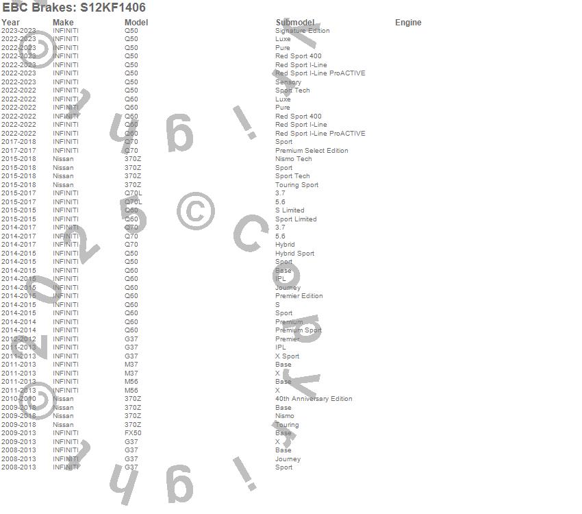 Below is an abbreviated list of applications for the S12 Kits Redstuff and RK Rotors.
