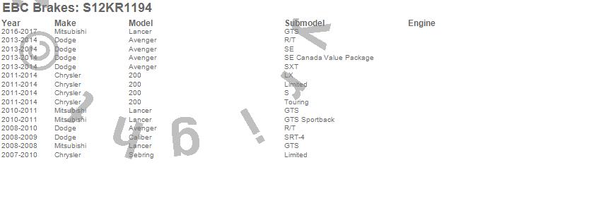 Below is an abbreviated list of applications for the S12 Kits Redstuff and RK Rotors.