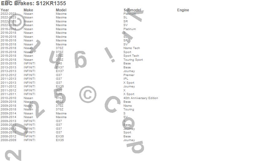 Below is an abbreviated list of applications for the S12 Kits Redstuff and RK Rotors.