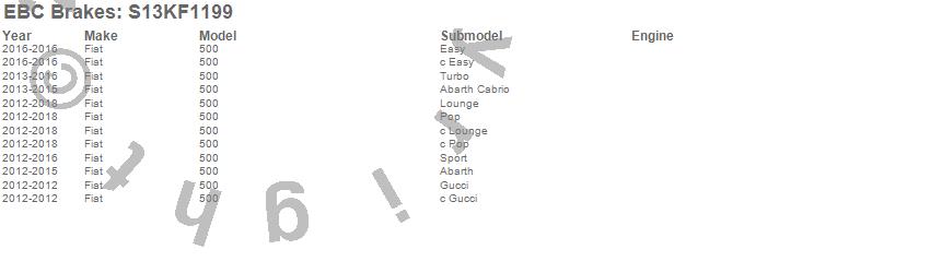 Below is an abbreviated list of applications for the S13 Kits Yellowstuff and RK Rotors.