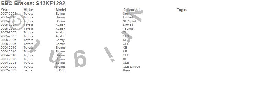 Below is an abbreviated list of applications for the S13 Kits Yellowstuff and RK Rotors.