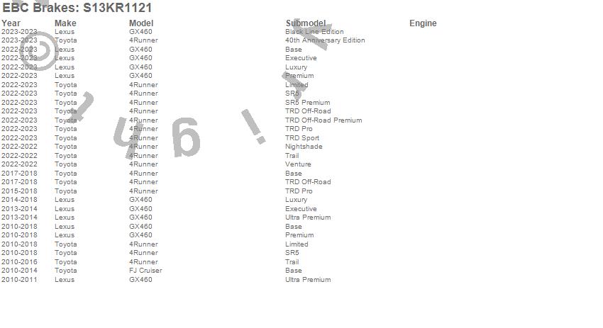Below is an abbreviated list of applications for the S13 Kits Yellowstuff and RK Rotors.
