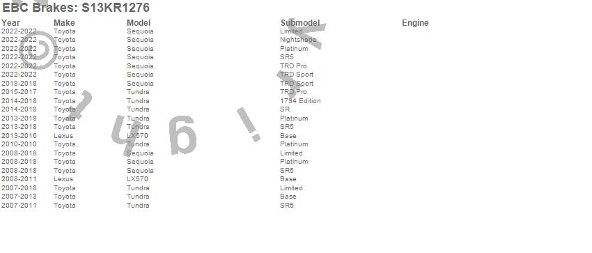 Below is an abbreviated list of applications for the S13 Kits Yellowstuff and RK Rotors.