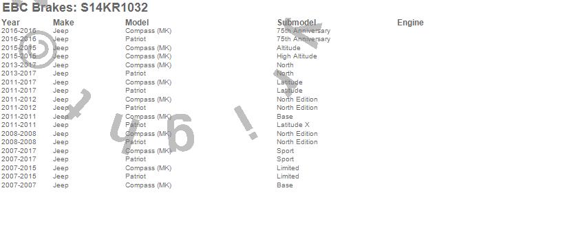 Below is an abbreviated list of applications for the S14 Kits Greenstuff and RK Rotors SUV.