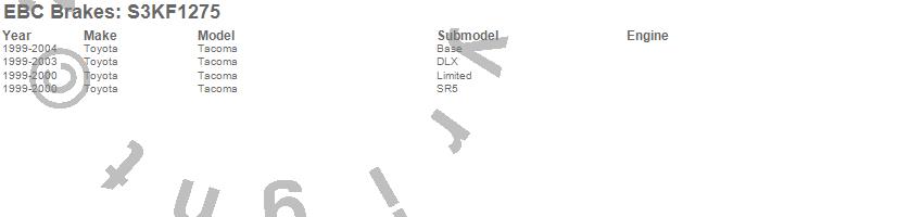 Below is an abbreviated list of applications for the S3 Kits Greenstuff 6000 and GD Rotors Truck/SUV.