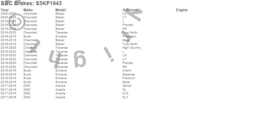Below is an abbreviated list of applications for the S5 Kits Yellowstuff And GD Rotors.