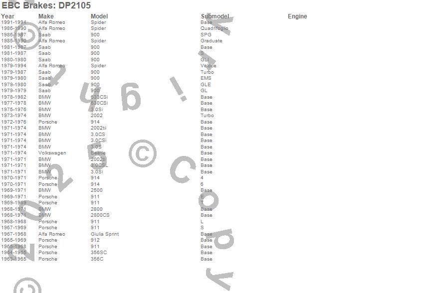 2002, 2002ti, 2002tii, 2500, 2800, 2800CS, 3.0CS, 3.0CSi, 3.0CSL, 3.0S, 3.0Si, 356B, 356C, 356SC, 630CSi, 633CSi, 900, 911, 912, 914