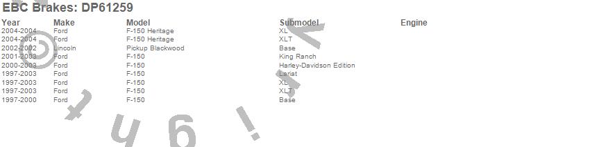 Below is an abbreviated list of applications for the 6000 Series Greenstuff Truck/SUV Brakes Disc Pads.