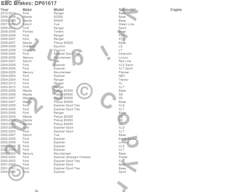 Below is an abbreviated list of applications for the 6000 Series Greenstuff Truck/SUV Brakes Disc Pads.