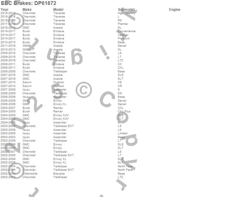 Below is an abbreviated list of applications for the 6000 Series Greenstuff Truck/SUV Brakes Disc Pads.