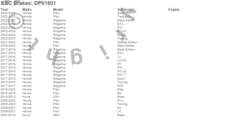 Below is an abbreviated list of applications for the 6000 Series Greenstuff Truck/SUV Brakes Disc Pads.