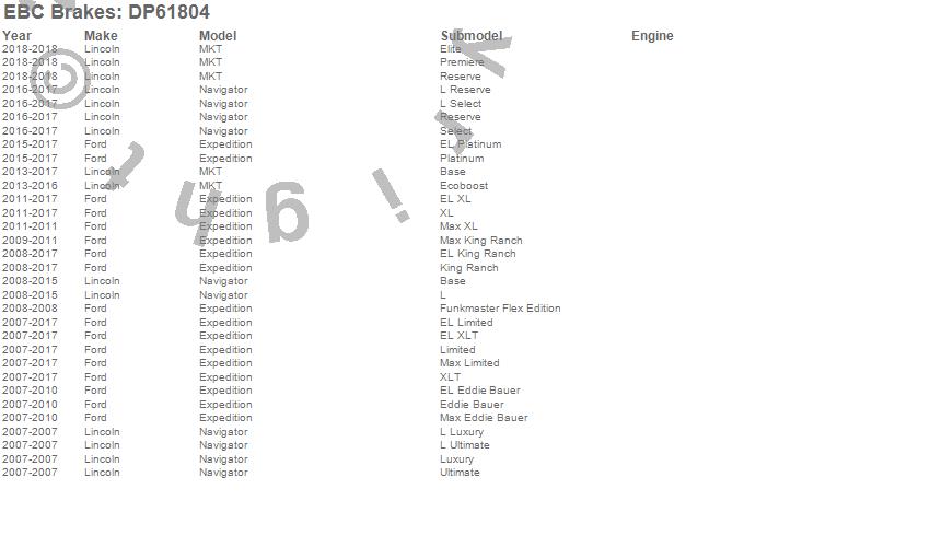 Below is an abbreviated list of applications for the 6000 Series Greenstuff Truck/SUV Brakes Disc Pads.