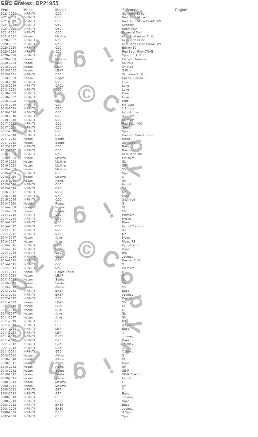 Altima, EX35, EX37, G25, G35, G37, Juke, LEAF, M37, Maxima, Q40, Q50, Q60, Q70, Q70L, Rogue, Rogue Select, Sentra, INFINITI, Nissan