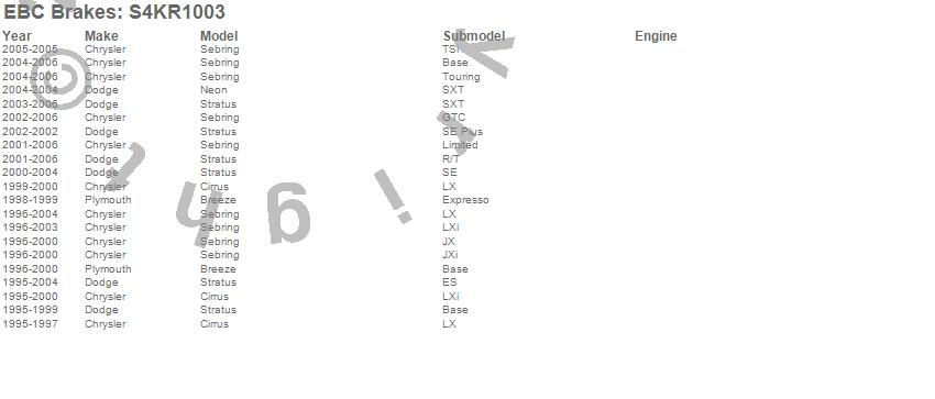 Below is an abbreviated list of applications for the S4 Kits Redstuff and USR Rotor.