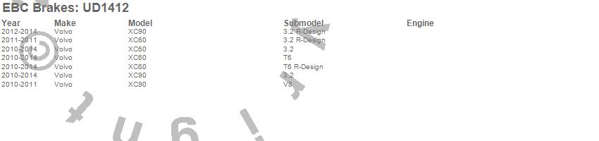 EBC Brakes UD1412 Ultimax OEM Replacement Brake Pads FMSI Pad No. D1412 - Vented - 328mm Dia. - 52mm Height - 30mm Thick - 68mm Center Hole Dia. - Pad Dimensions: 193 x 76 x 30mm