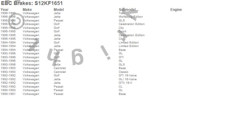 Below is an abbreviated list of applications for the S12 Kits Redstuff and RK Rotors.