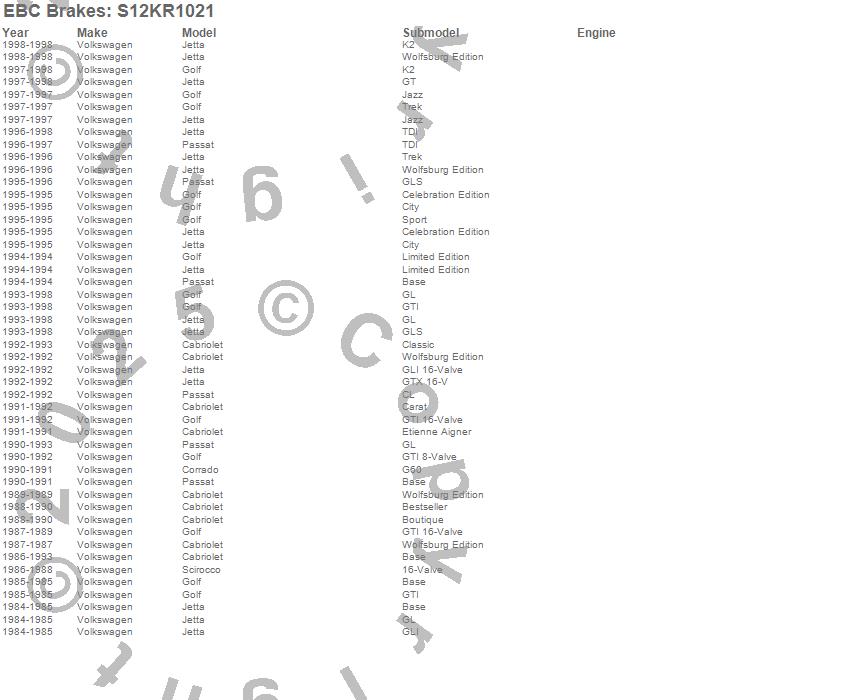 Below is an abbreviated list of applications for the S12 Kits Redstuff and RK Rotors.