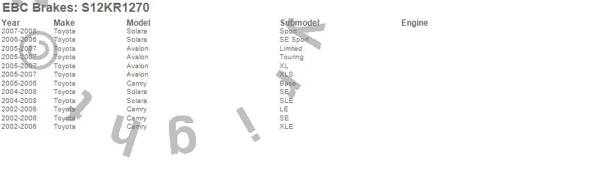 Below is an abbreviated list of applications for the S12 Kits Redstuff and RK Rotors.