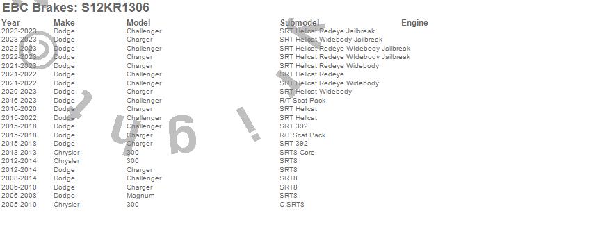 Below is an abbreviated list of applications for the S12 Kits Redstuff and RK Rotors.