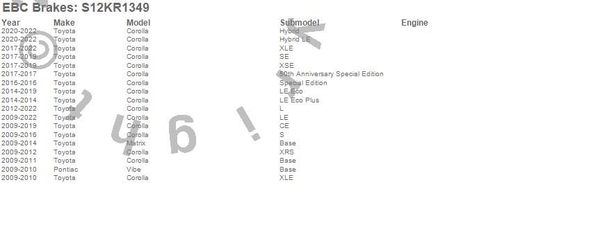 Below is an abbreviated list of applications for the S12 Kits Redstuff and RK Rotors.