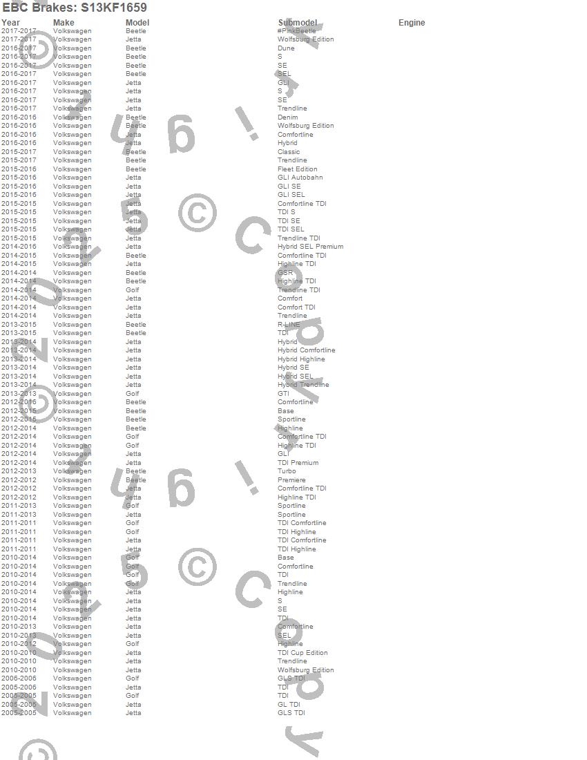 Beetle, Golf, Jetta, Volkswagen, 2017, 2016, 2015, 2014, 2013, 2012, 2011, 2010, 2006, 2005