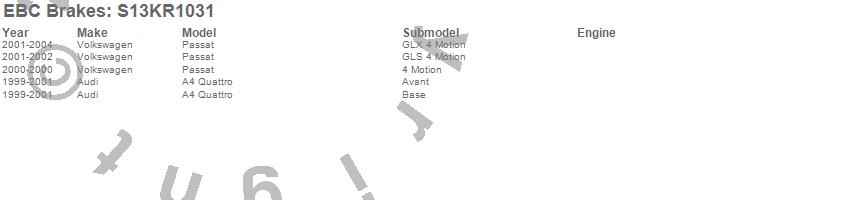 Below is an abbreviated list of applications for the S13 Kits Yellowstuff and RK Rotors.