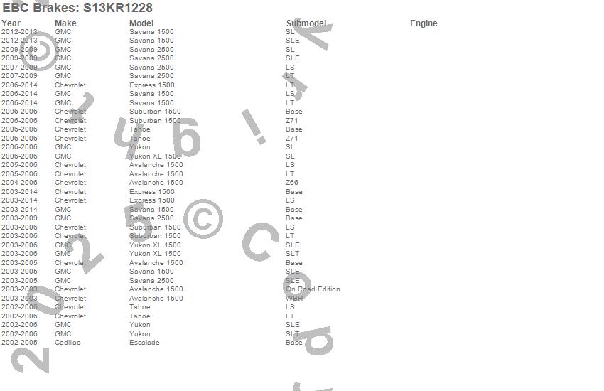 Below is an abbreviated list of applications for the S13 Kits Yellowstuff and RK Rotors.