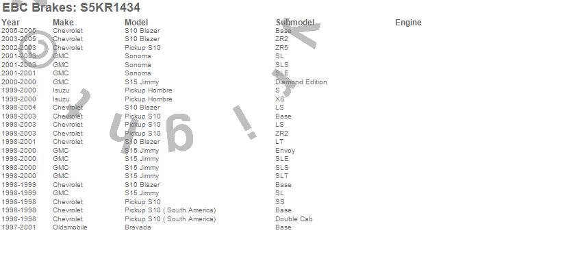 Below is an abbreviated list of applications for the S5 Kits Yellowstuff And GD Rotors.