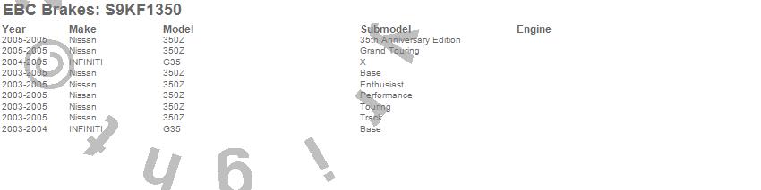 Below is an abbreviated list of applications for the S9 Kits Yellowstuff and USR Rotors.
