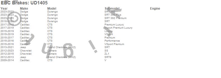 EBC Brakes UD1405 Ultimax OEM Replacement Brake Pads FMSI Pad No. D1405 - Vented - 380mm Dia. - 55mm Height - 34mm Thick - Pad Dimensions: 190 x 93 x 15mm