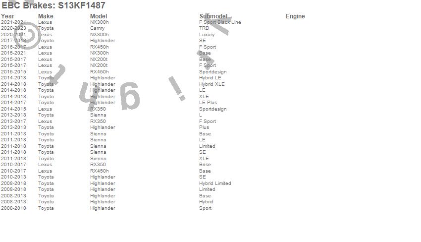 Below is an abbreviated list of applications for the S13 Kits Yellowstuff and RK Rotors.