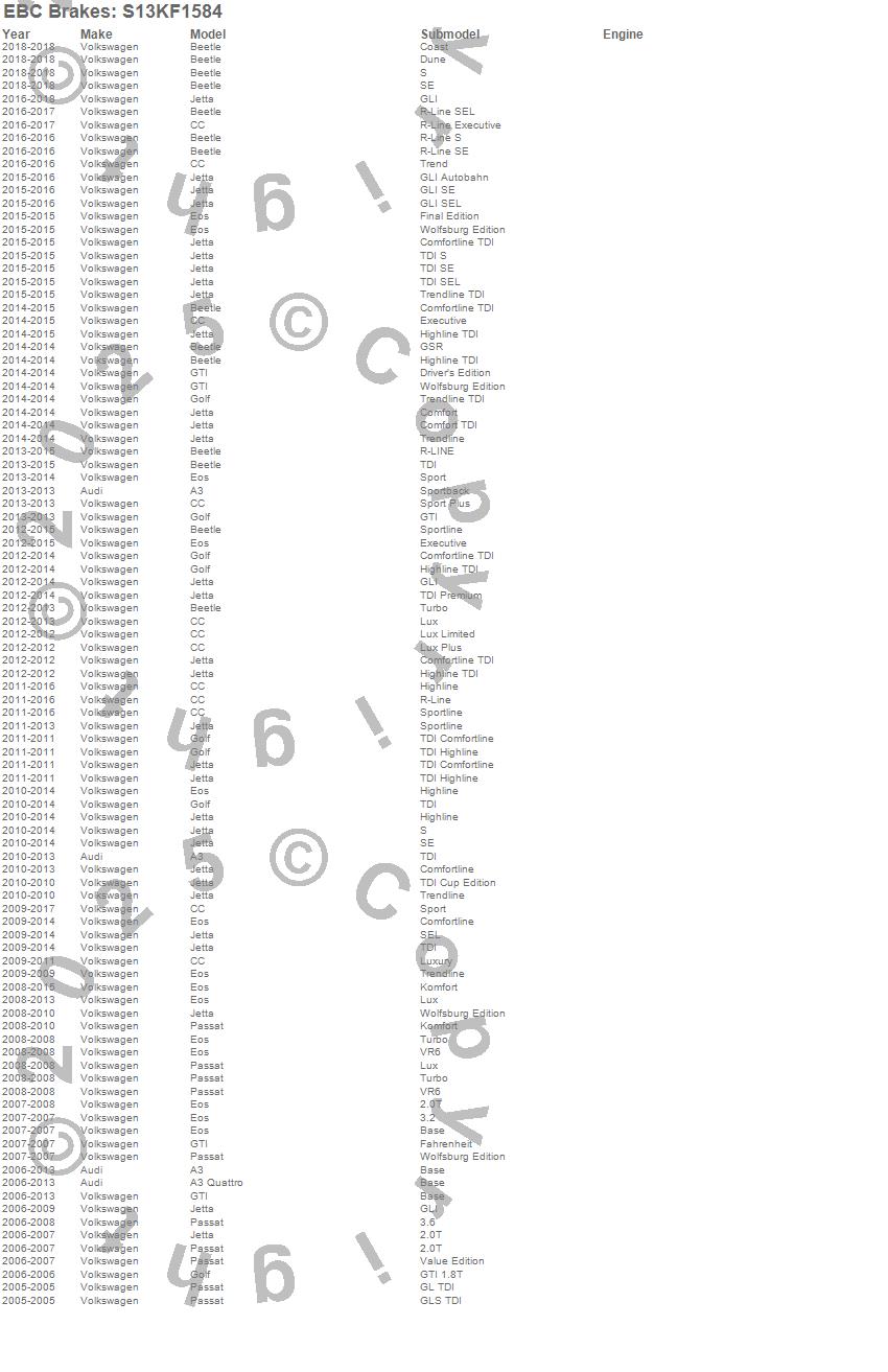 Below is an abbreviated list of applications for the S13 Kits Yellowstuff and RK Rotors.