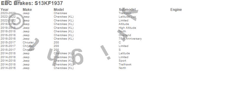 Below is an abbreviated list of applications for the S13 Kits Yellowstuff and RK Rotors.