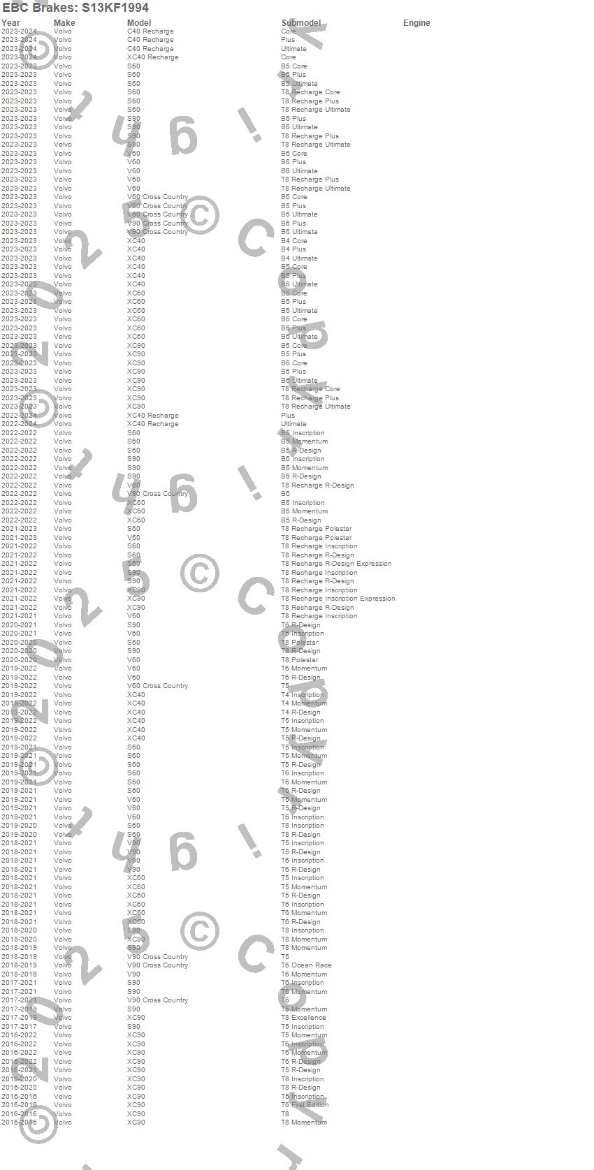 Below is an abbreviated list of applications for the S13 Kits Yellowstuff and RK Rotors.