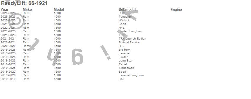 ReadyLift - Leveling Kit P/N 66-1921 Features: