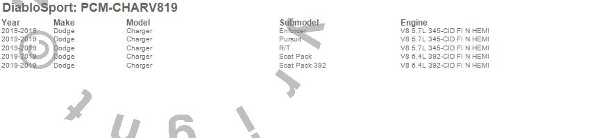 DiabloSport - Modified PCM P/N PCM-CHARV819 Features: