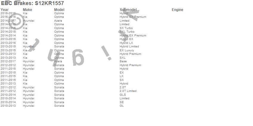 Below is an abbreviated list of applications for the S12 Kits Redstuff and RK Rotors.