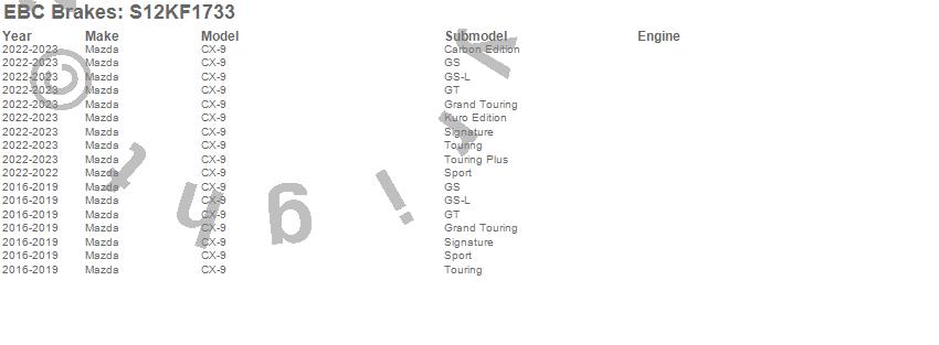 Below is an abbreviated list of applications for the S12 Kits Redstuff and RK Rotors.
