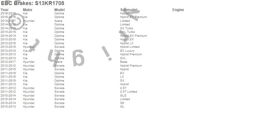 Below is an abbreviated list of applications for the S13 Kits Yellowstuff and RK Rotors.