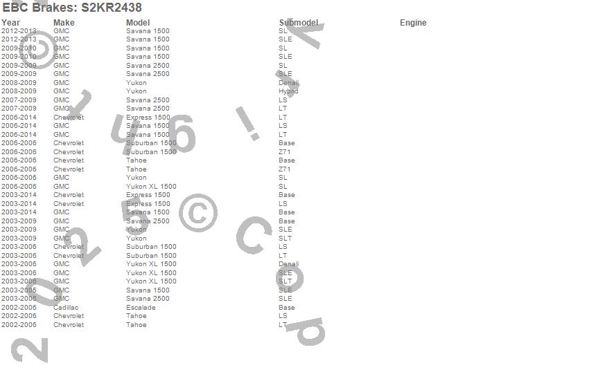 Below is an abbreviated list of applications for the S2 Kits Greenstuff 6000 and USR Rotors.