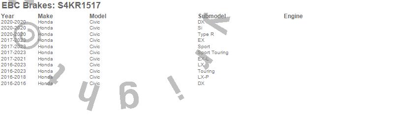 Below is an abbreviated list of applications for the S4 Kits Redstuff and USR Rotor.